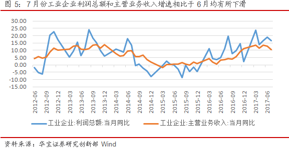 7月份工业企业利润数据走弱,但不足说明基本面出现真正的反转。从单月数据来看,7月份工业企业利润总额与主营业务收入同比增速分别为16.5%和10.27%,增速较6月份分别下降2.6和2.4个百分点。收入与利润均有所下滑,根据统计局的解释,主要是受极端高温天气条件下部分企业放假、停产等短期非经济因素影响。从库存上看,7月产成品库存增速继续第3个月下滑,与7月份的生产数据大幅下滑保持一致。结合近两个月的数据,可以看出需求端已开始放缓,不过由于无法排除异常高温天气对于7月份经济数据的影响,对于需求端拐点的确认尚需观察8月数据。