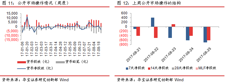 超储率维持低位情况下,市场的流动性受央行投放和财政收支的影响出现大幅波动。8月中旬开始,受缴税的影响,资金面开始收紧,但是超出市场预期的是资金面的紧张在8月下半月一直持续,预计的财政投放并没有对冲掉央行对于资金的净回笼的影响。尽管央行不断强调“削峰填谷”的货币政策操作思路,但是超储率持续历史地位,使得整个市场的流动性并不充裕,银行向非银投放流动性的意愿并不是太强烈,所以当央行的货币投放回笼与财政的收支出现一定的错位时,非银的流动性面临较大的不确定性。
