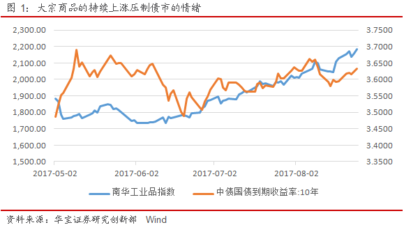 资金面维持偏紧状态,债券市场收益率小幅走高。上周,央行公开市场操作净回笼2500亿元,资金面继续维持偏紧的状态。资金面的持续紧张,使得债券市场的情绪受到了压制。此外,供给侧改革深化和环保督查的持续发酵引发了市场对于大宗商品持续上涨的担忧,大宗商品价格的持续上涨也带动了债券市场收益率的抬升。对于信用债而言,收益率整体上行,且上行幅度普遍在7-12bp之间,信用利差进一步压缩。在基本面、政策面等在短期没有超预期的情况下,资金面成为目前市场的主要矛盾,资金面的持续偏紧也在一定程度上压制了债市的表现。