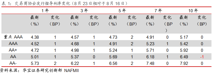信用债发行利率方面,在二级市场带动下,关键期限的发行利率普遍有所上行。由交易商协会公布的发行指导利率来看,各期限品种基本上呈上行的态势。