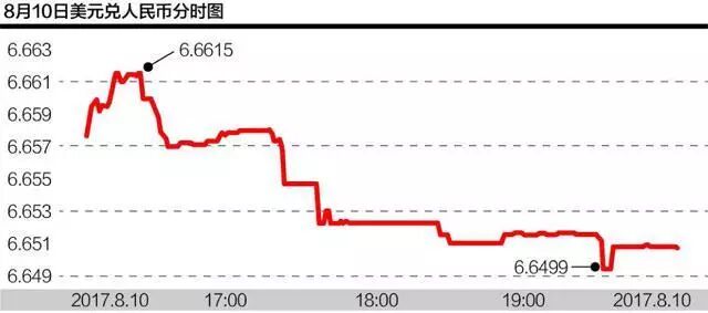 截至10日19时,境内在岸市场人民币兑美元汇率徘徊在6.6520附近,盘中继续刷新年内高点。