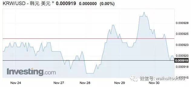 11月以来,韩元对美元多次创下一年以来新高。11月16日,韩元兑美元创下去年9月以来新高,韩国官员表示涨势过度。韩国财长Kim Dong-yeon还表示,尽管全球经济复苏和国内消费都表现疲软,但今年韩国可以实现3%的经济增长。事实上,Kim Dong-yeon还似乎尝试“口头干预”。他表示,“绝对不希望”通过提振韩元兑美元,从而帮助人均国民收入达到3万美元,实现这一水平并不容易,政府将竭尽全力地努力,但不会坚持相关数字。