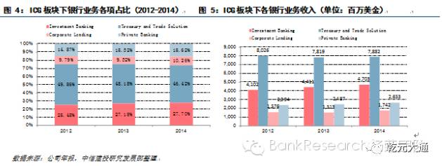 资金和交易解决方案,即我们所理解的交易银行相关业务,在花旗银行的机构客户组,即对公业务板块下,2012-2014年期间占比平均约48.15%,占整体收入比重与德意志银行类似,约10%左右,体现了稳健的特性。此外,TTS部门为对公业务的存款余额贡献约66%-67%,对整体存款余额贡献达40%左右。