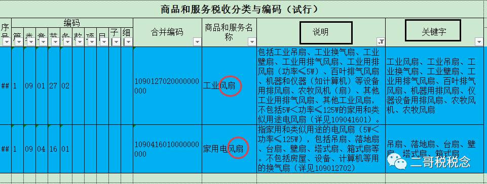 纳税人销售了一台风扇,风扇名称是二哥牌工业挂扇,开票人员在系统增加编码,输入商品名称二哥牌工业挂扇,然后选择17%税率,编码选了一大圈,实在太多了,很容易看蒙圈,然后突然看到风扇两字,就像捡到救命稻草,立马选上,顺利开出。