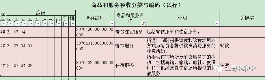 还是按照编码表来看,用餐饮来举例,看看编码表!