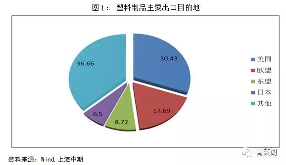 菁英阁认为,若美国提高塑料制品关税,短期来看,由于我国塑料制品出口占国内塑料制成品产量比重较高,出口量的变化对塑料产业影响较大(2017年我国塑料制品(HS码3918,3922-3926项下产品)出口达1168万吨,出口量占塑料制品产量的15.5%)。从出口目的地来看,2017美国占国内塑料制品出口额的30.43%。目前美国对塑料制品关税6.3%,若美国对我国塑料制品大幅提高关税,由于我国塑料制品出口企业大部分为民营企业(民营企业数占比为73%,民营塑料制品出口金额占比为66.3%),部分企业规模仍然较小,而且小企业往往专注于某一类产品,不像大公司那样多元化,由于这些企业的订单难以在短时间内出口至非美国以外的国家,这使得他们受美国进口关税的影响非常大。因此,若美国提高关税,国内部分出口导向型的小企业出口订单下降,这些企业对聚烯烃等原材料需求下降,在聚烯烃产能仍旧在扩张的情况下,可能导致国内聚烯烃供需出现阶段性失衡。