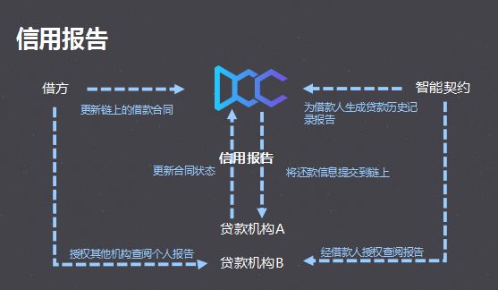 在信贷领域,有不少的企业都在进行着类似的尝试,譬如LinkEye致力于征信联盟,Ripio、Jibrel、SALT、ETHlend、Lendroid等都试图减少中心机构的存在。但是,DCC真正率先实现了落地。其思路主要围绕用户数据自主权,从两个方面进行展开:其一,解决传统中心机构的数据所有权占有问题;其二,解决“放款人和借款人、企业和个人之间、跨地区和跨行业的金融交易”的流程繁琐问题。