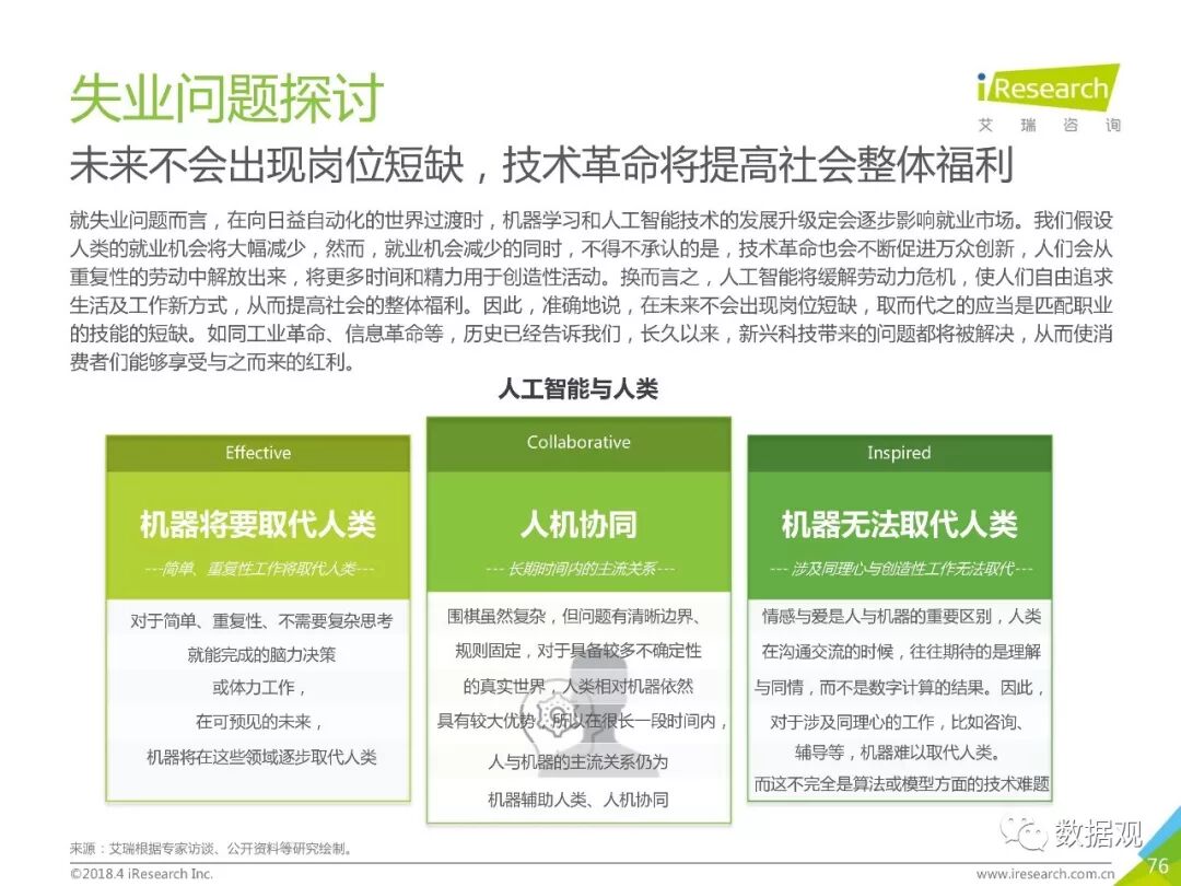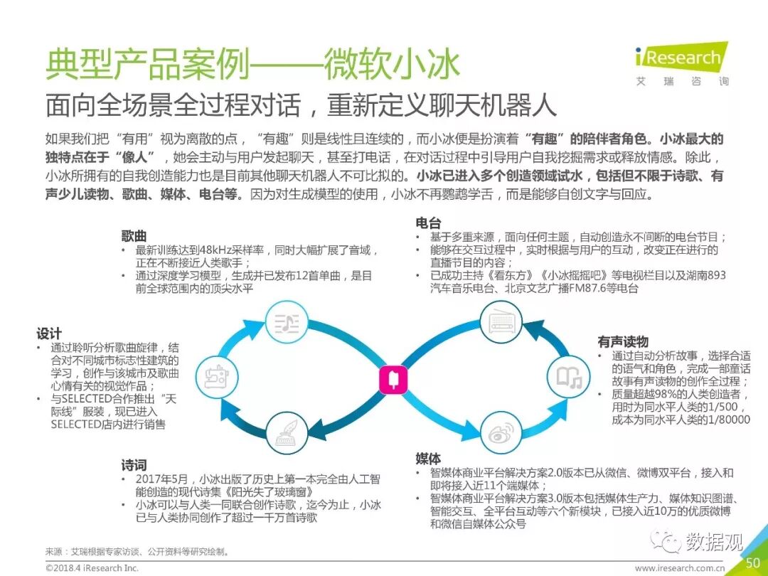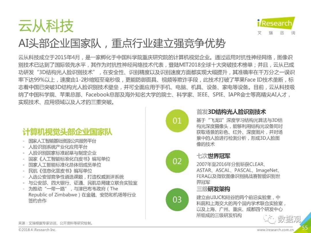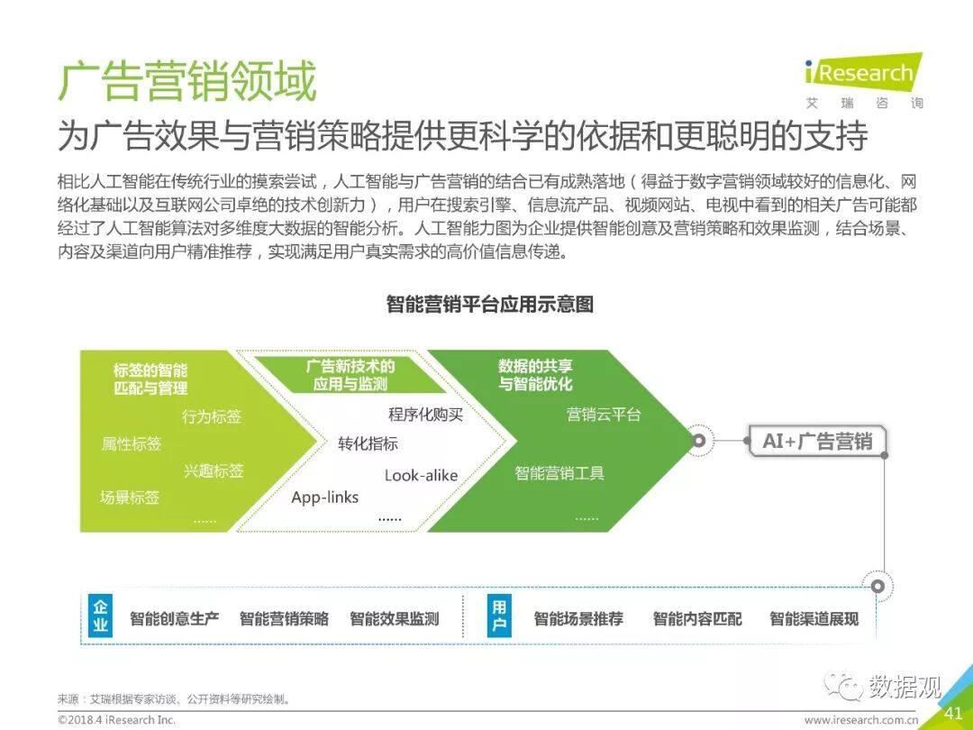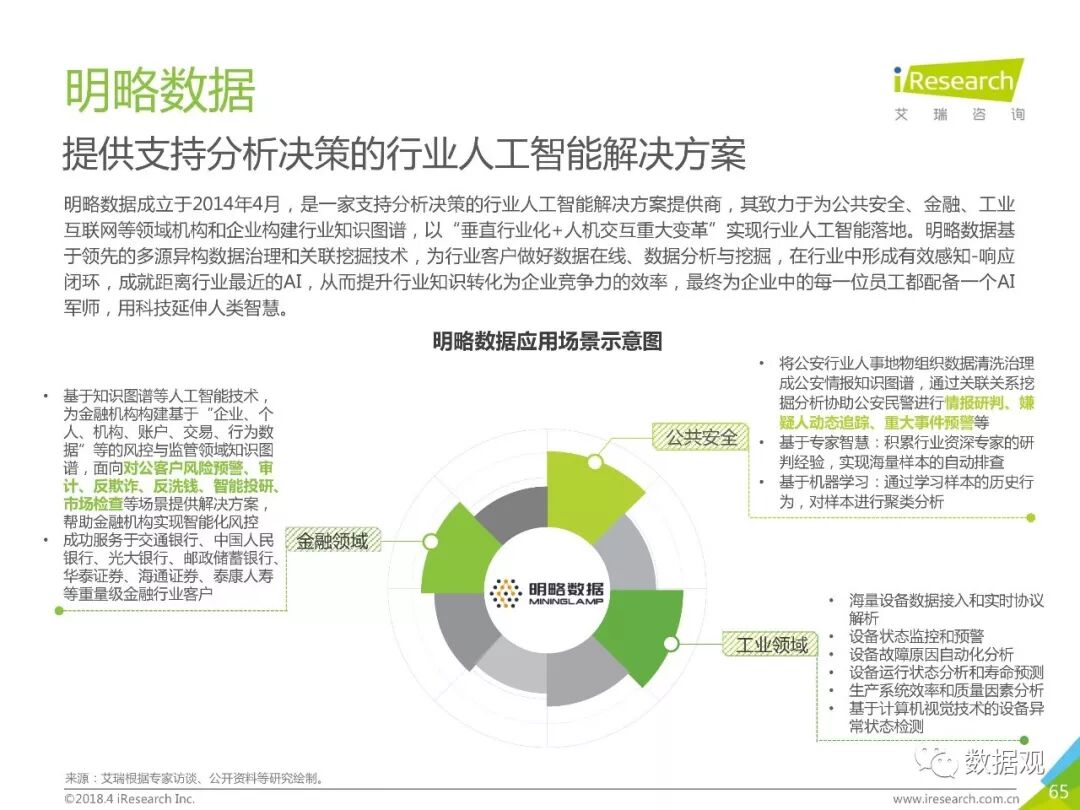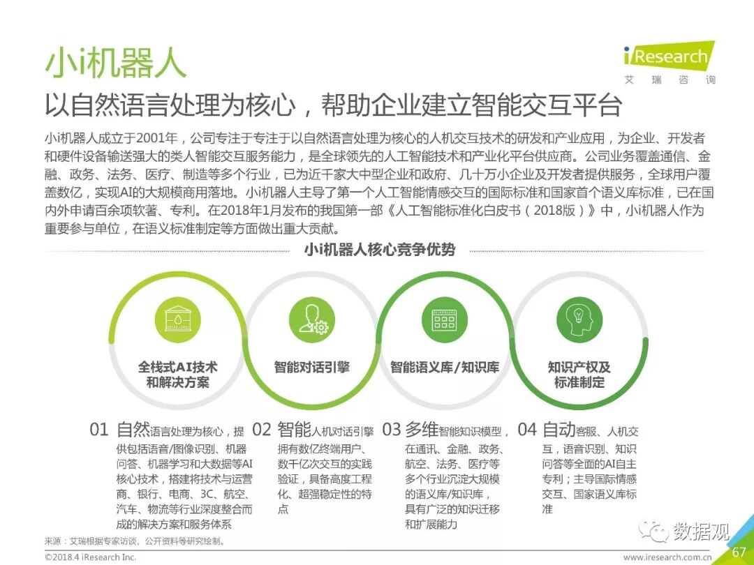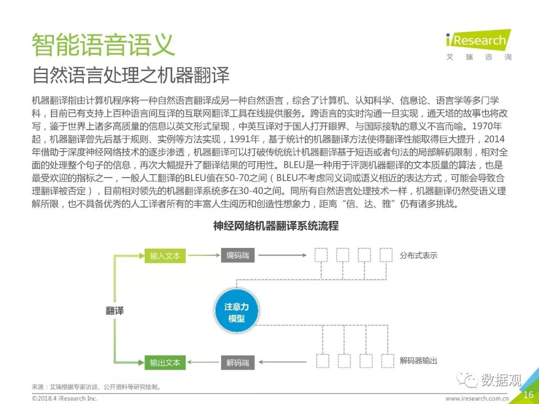 艾瑞研究院发布的《2018年中国人工智能行业研究报告》将从人工智能技术、应用、产业等维度对该行业进行探讨,其中,人工智能技术包括凡是使用机器帮助、代替甚至部分超越人类实现认知、识别、分析、决策等功能,而产业则指包含技术、算法、应用等多方面的价值体系。