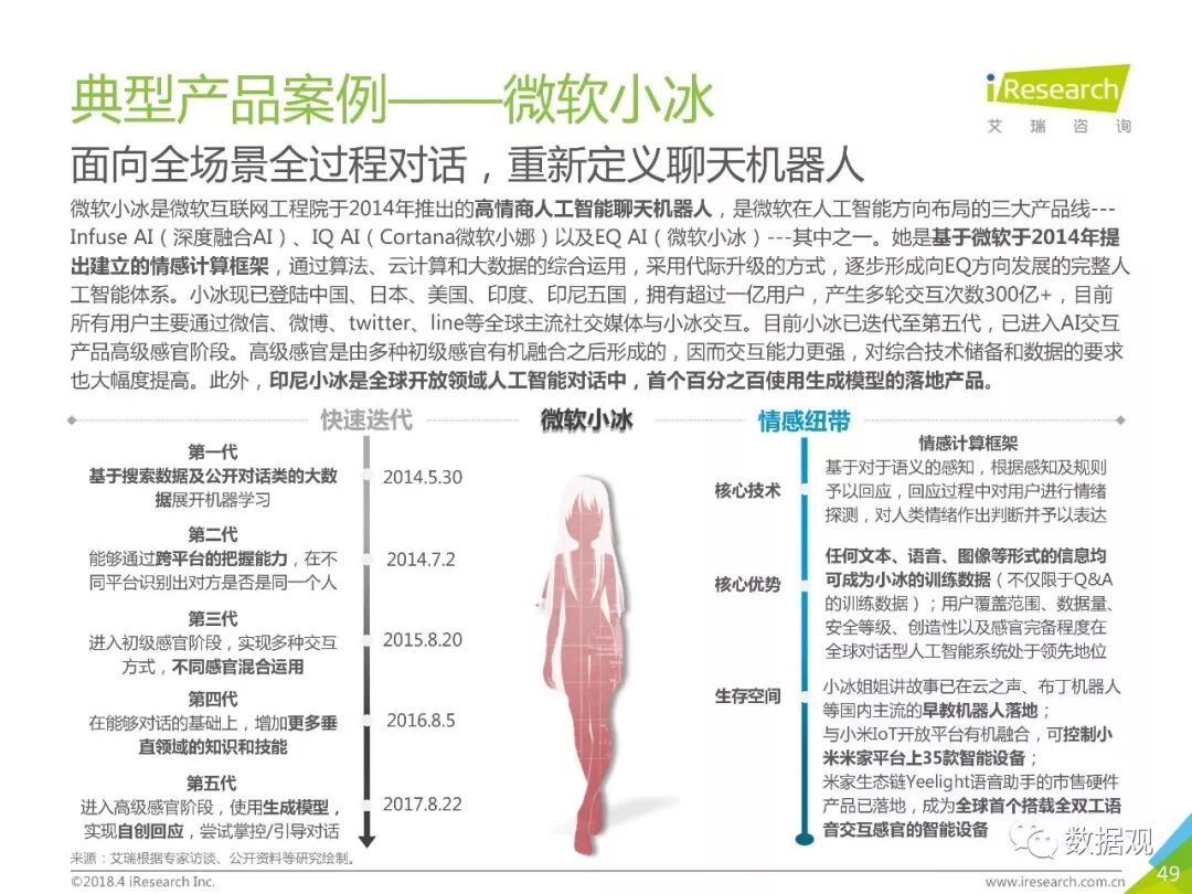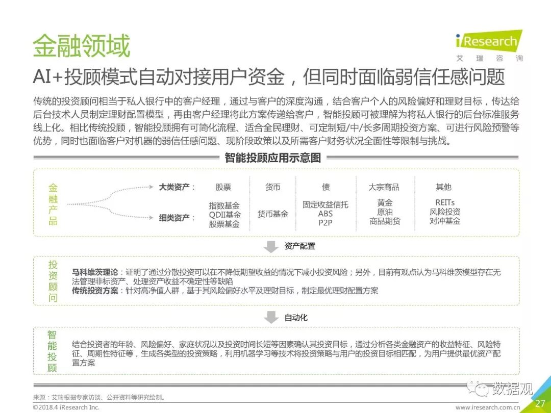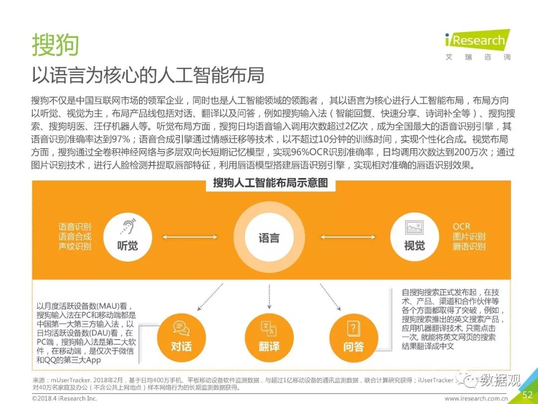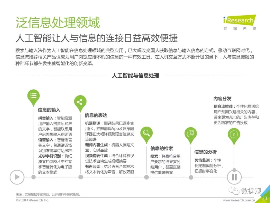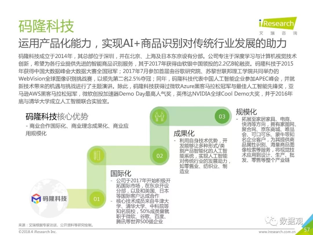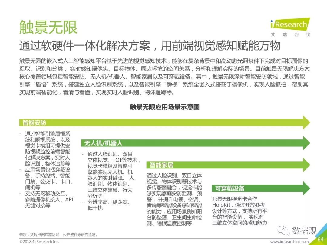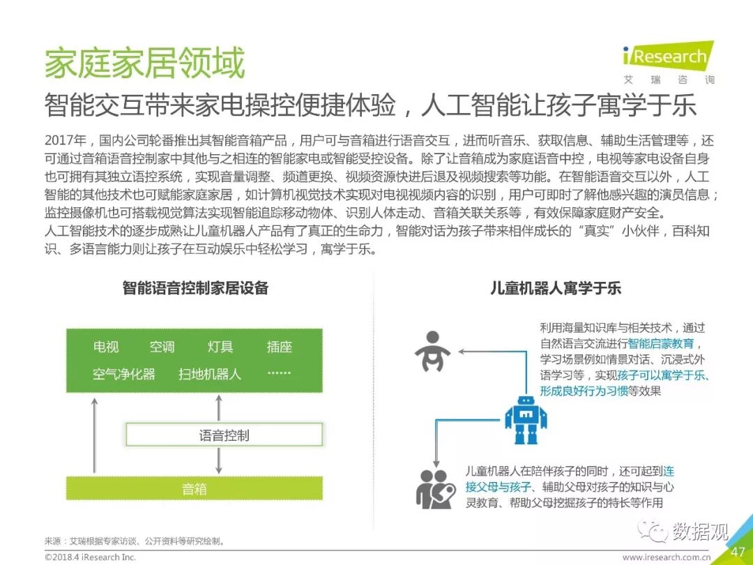 艾瑞研究院发布的《2018年中国人工智能行业研究报告》将从人工智能技术、应用、产业等维度对该行业进行探讨,其中,人工智能技术包括凡是使用机器帮助、代替甚至部分超越人类实现认知、识别、分析、决策等功能,而产业则指包含技术、算法、应用等多方面的价值体系。