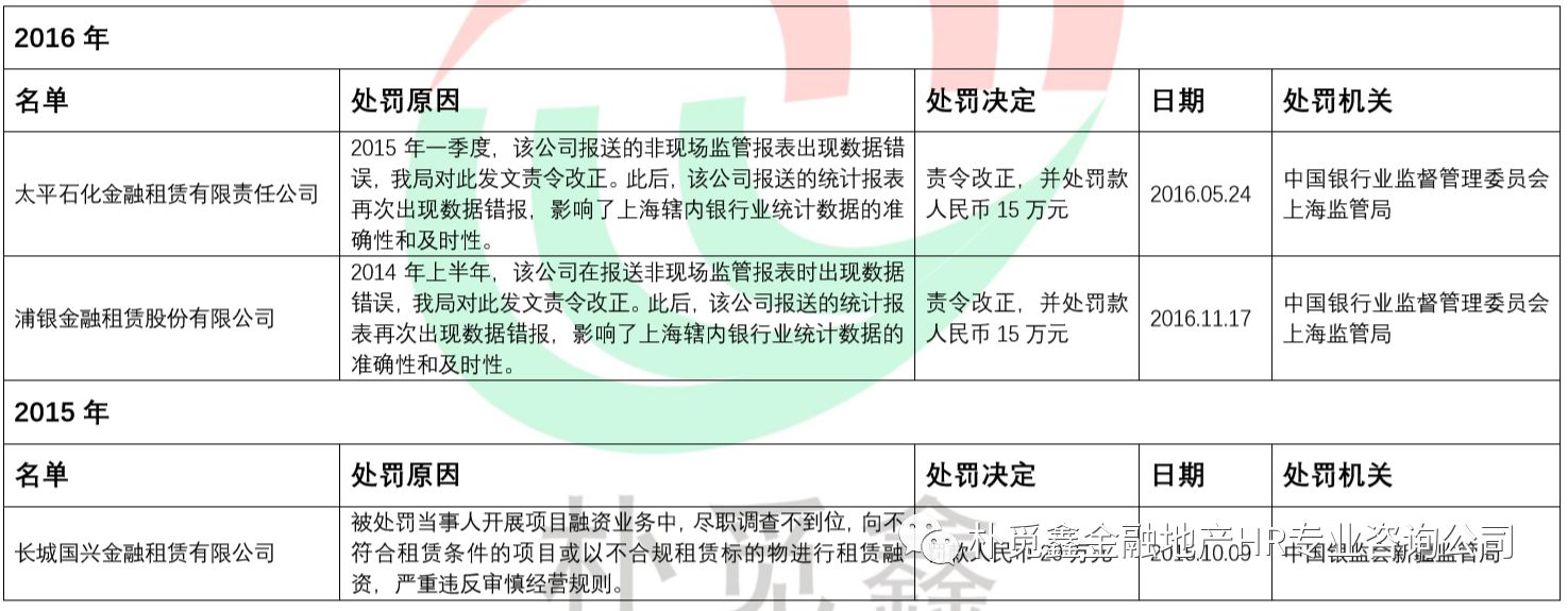 2015、2016年共3家金租公司遭罚