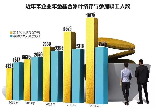 1月底,人社部新闻发言人卢爱红在第四季度新闻发布会上表示,到2017年有8万多户企业建立企业年金,参加职工有2300多万人,企业年金基金积累超1.3万亿。