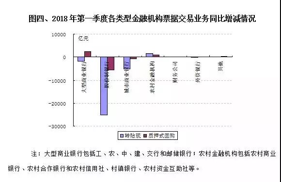 三、运行特点原因分析 (一)企业需求增加和银行主动营销共同促进承兑业务明显增长 2018年第一季度,国民经济实现良好开局,企业生产经营稳定扩张,支付结算需求增加,承兑业务需求上升。一季度规模以上工业增加值同比实际增长6.8%,增速与上年同期持平;规模以上工业企业产销率达到97.9%,比上年同期提高0.3个百分点,生产贸易持续活跃,带动企业承兑需求回升。同期,金融机构存款增长趋缓。一季度,金融机构人民币存款累计增加5.06万亿元,同比多增77亿元,其中非金融企业存款累计减少1.21万亿元,商业银行吸收存款压力上升。票据承兑业务作为银行主动负债的重要途径,可以为银行带来稳定的保证金存款。分机构类型看,一季度票据承兑业务增加最多的是股份制银行和城市商业银行等,而存款较为稳定的政策性银行和邮储银行则未增加。 (二)税收新政推动贴现业务回升 根据《关于建筑服务等营改增试点政策的通知》(财税〔2017〕58号)规定,自2018年1月1日起,金融机构开展贴现、转贴现业务,以其实际持有票据期间取得的利息收入作为贷款服务销售额计算缴纳增值税。票据贴现环节税收成本降低,显著提升了市场参与者贴现积极性。分机构类型看,贴现业务增长最多的是股份制银行,一季度办理贴现业务8463.27亿元,同比增加1744.22亿元,增长25.96%,占全市场贴现增量的43.1%。其次是农村金融机构,其税收优势促进了贴现业务持续增长,一季度农村金融机构办理贴现业务2254.17亿元,同比增加890.18亿元,增长65.26%,占全市场贴现增量的22%。 (三)强监管背景下市场交易活跃度继续下降 今年以来,金融监管强化态势延续,机构开展票据交易更趋规范,其中股份制银行票据交易大幅减少,导致整个市场交易活跃度下降。股份制银行因机制灵活,一直是票据市场最为活跃的机构类型,受监管强化和金融去杠杆影响较大,“代持+回购”、套利、票据资管等模式均处于暂停或者审慎开展状态,导致转贴现和质押式回购业务同步大幅回落。 (四)商业银行信贷规模趋紧引导票据利率上行 从企业端看,年初企业信贷需求往往比较旺盛;同时,票据承兑增加,企业申请贴现需求也相应增加。 从银行端看,在年初信贷需求旺盛的情况下往往更倾向于发放利息收益高的贷款,而会压缩利息收益相对较低的票据资产,导致票据供过于求,市场利率不断走高。3月末金融机构贷款余额较年初增加4.86万亿元,同比多增6339亿元,而同期票据融资余额减少547亿元。 四、2018年第二季度票据市场展望 第二季度,宏观经济有望保持稳中有进、稳中向好发展态势,有利于企业支付和融资需求增长,票据承兑和贴现业务有望延续增长趋势。同时,随着实体经济信贷发放逐步到位,信贷规模趋紧态势或将趋缓,银行持票意愿回升,票据融资业务有望回暖。去杠杆和严监管形势不变,票据交易将更趋规范和稳健。去年11月份发布的《关于规范金融机构资产管理业务的指导意见(征求意见稿)》规定“金融机构不得将资产管理产品资金直接或者间接投资于商业银行信贷资产”以及标准化债权类资产的定义,对票据市场影响深远,市场参与者非常关注该项政策,如果近期资管新规“靴子”落地,将对票据市场带来较大影响。随着票交所系统功能完善和交易便捷性提高,质押式回购短期化趋势料将延续,在交易中占比有望持续提升。