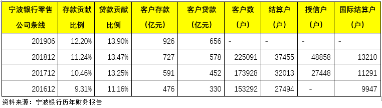 例如,2019年上半年宁波银行通过小微企业综合金融服务,新增2517户价值客户(主要指国际结算、理财和贴现等)。再以2018年数据为例,宁波银行的零售公司客户数达到225091户,其中结算客户37455户、授信客户48858户、国际业务客户13210户、理财客户5671户、电子银行有效客户66957户。