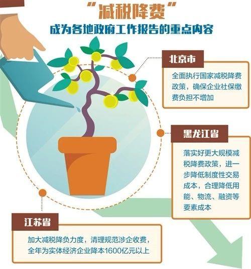 | 2019-02-18 14:09各地政府分别从税收、社保、非税收入、纳税服务、营商环境等方面全面贯彻落实减税降费政策精神。可以预见,通过这一轮更大规模的普惠性实质性减税,能够为企业创造一个更好的发展环境,对于促进制造业、科技企业、小微企业等发展起到积极作用。